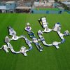 Chinee use customized anti UV&heat material makes the life span of the floating water park 30%-50% longer than normal material that most suppliers have been using, especially for the strong UV and high temperature area.