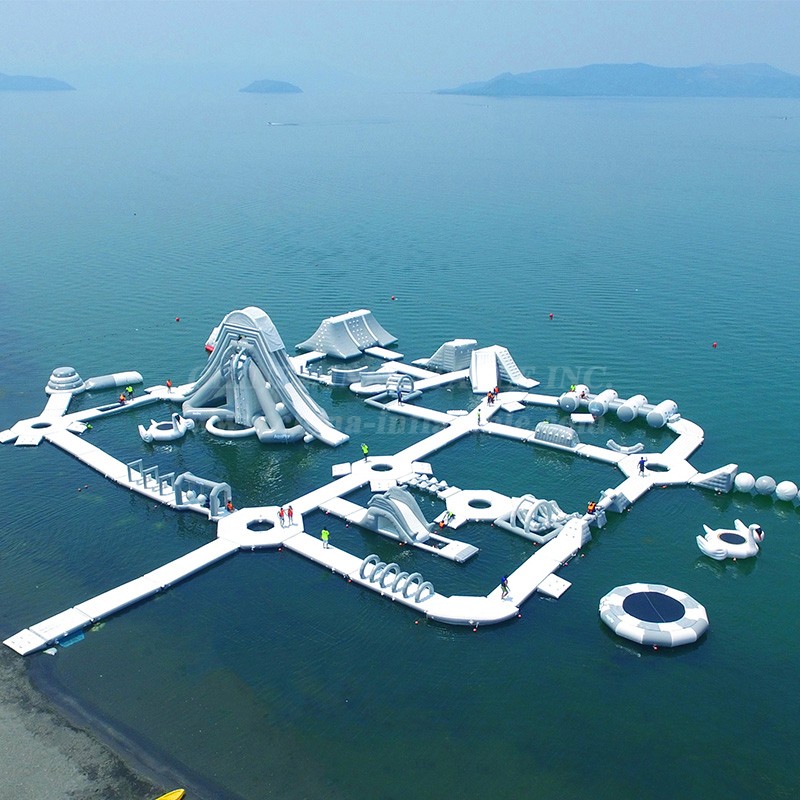 Chinee use customized anti UV&heat material makes the life span of the floating water park 30%-50% longer than normal material that most suppliers have been using, especially for the strong UV and high temperature area.