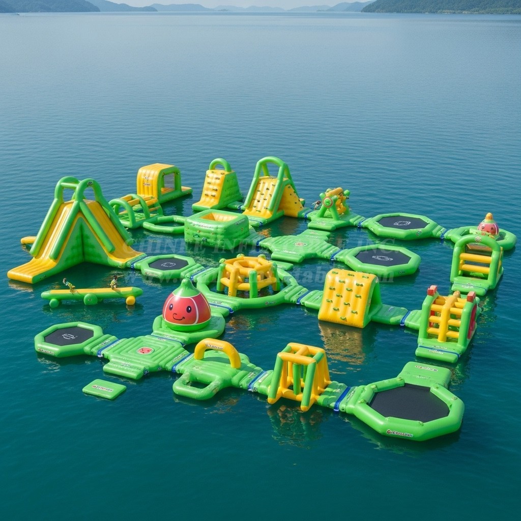 Chinee use customized anti UV&heat material makes the life span of the floating water park 30%-50% longer than normal material that most suppliers have been using, especially for the strong UV and high temperature area.