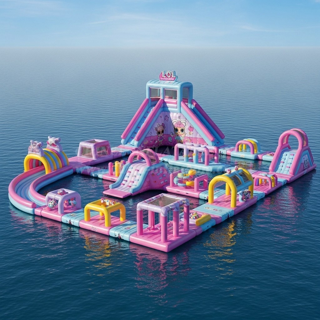 Chinee use customized anti UV&heat material makes the life span of the floating water park 30%-50% longer than normal material that most suppliers have been using, especially for the strong UV and high temperature area.
