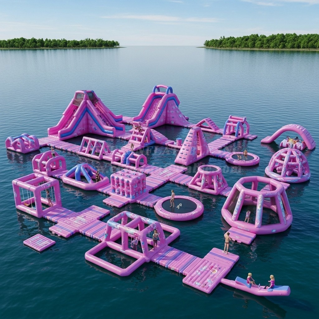 Chinee use customized anti UV&heat material makes the life span of the floating water park 30%-50% longer than normal material that most suppliers have been using, especially for the strong UV and high temperature area.