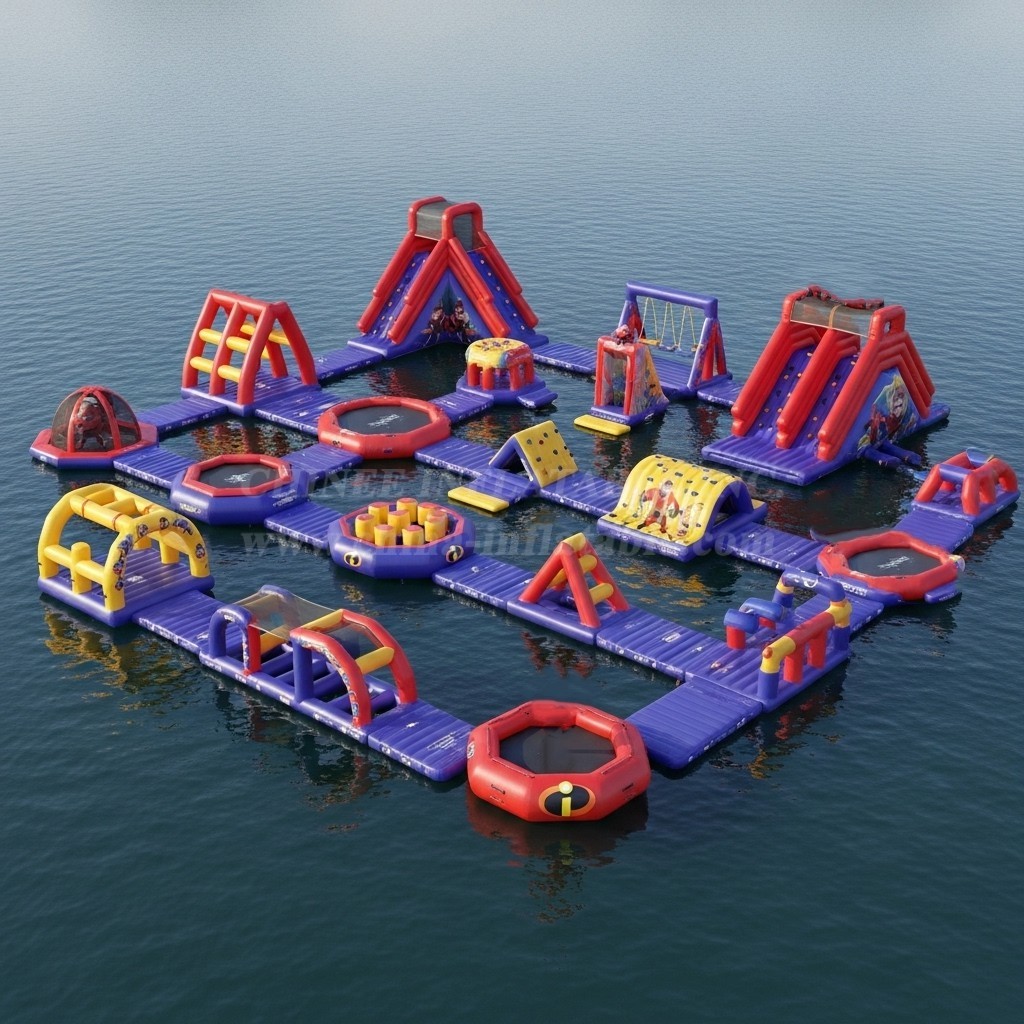 Chinee use customized anti UV&heat material makes the life span of the floating water park 30%-50% longer than normal material that most suppliers have been using, especially for the strong UV and high temperature area.