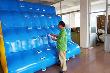 Chinee use customized anti UV&heat material makes the life span of the floating water park 30%-50% longer than normal material that most suppliers have been using, especially for the strong UV and high temperature area.