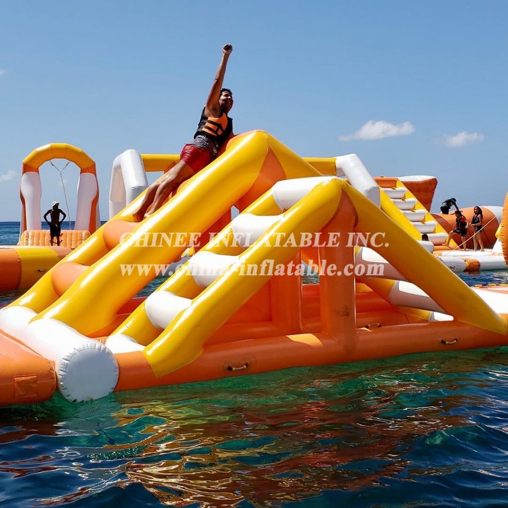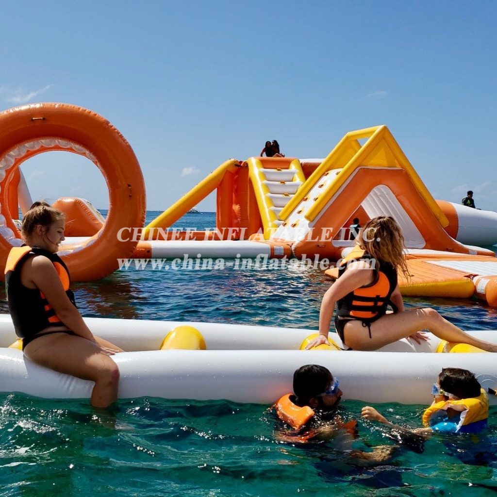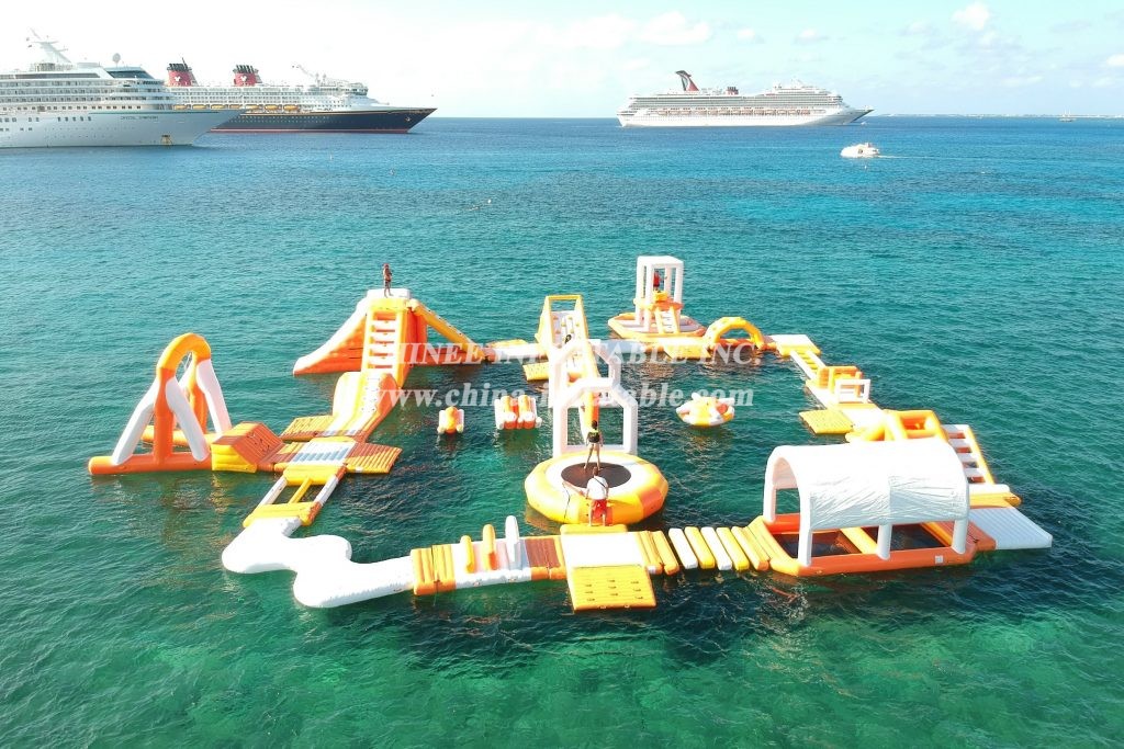 Chinee use customized anti UV&heat material makes the life span of the floating water park 30%-50% longer than normal material that most suppliers have been using, especially for the strong UV and high temperature area.