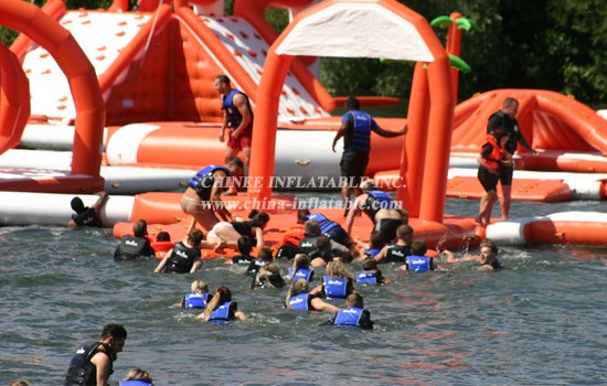 Chinee use customized anti UV&heat material makes the life span of the floating water park 30%-50% longer than normal material that most suppliers have been using, especially for the strong UV and high temperature area.