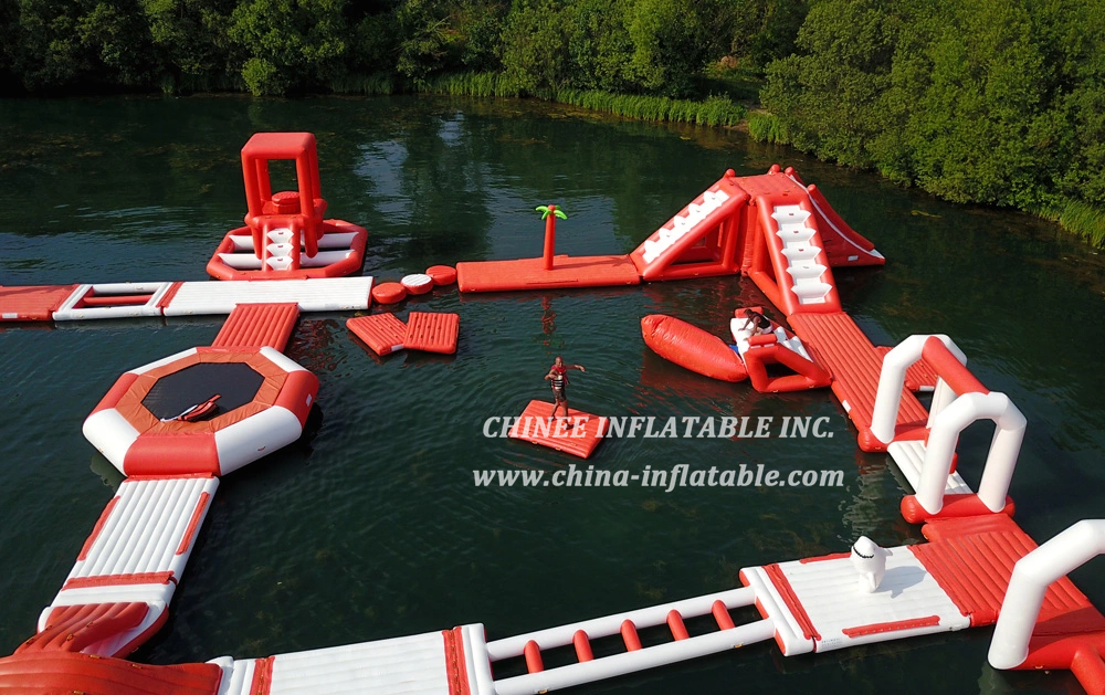 Chinee use customized anti UV&heat material makes the life span of the floating water park 30%-50% longer than normal material that most suppliers have been using, especially for the strong UV and high temperature area.